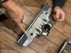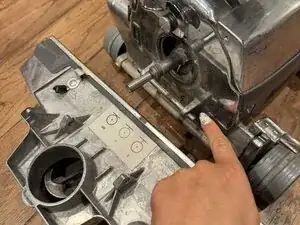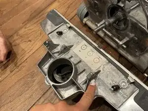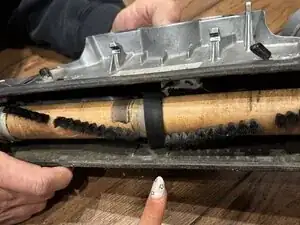Выньте щётковый вал — ремень будет обёрнут вокруг него.