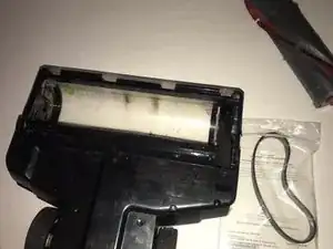 Вытяните ремень пылесоса из-под колеса, удерживающего его на месте.