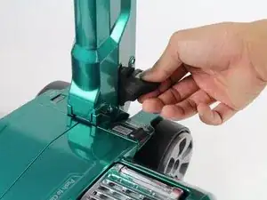 Нажмите вниз на рычаг контейнера для пыли, чтобы освободить контейнер для доступа к решетке фильтра.