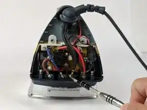 Удалите два винта, крепящие черные провода к корпусу утюга.