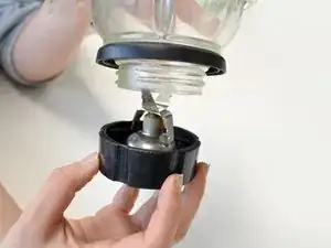 Открутите основание от стеклянной емкости. Правильное направление указано красной стрелкой.