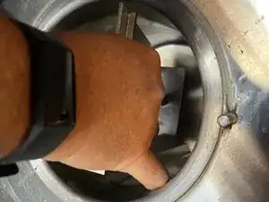 Аккуратно поворачивайте брус по часовой стрелке, пока вал не зацепит приводной диск, что позволит вам продвинуть брус ближе к задней стенке камеры.