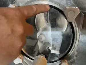 Обратите внимание на вал смешивающего элемента на брусе, который подключается к белой втулке лицевой панели, где было уплотнение.