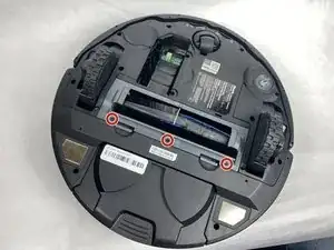 Снимите три винта Phillips размером 8 мм с пластиковой платы, удерживающей ролик щётки.