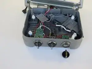 Удалите единственный винт Phillips #2 размером 5,5 мм рядом с черной кнопкой в центре.
