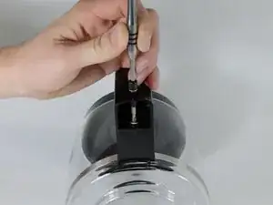 Используйте битовую отвертку с битой Phillips PH1, чтобы удалить винт длиной 5 миллиметров в верхней сборке ручки.