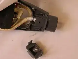 Будьте очень осторожны, чтобы не потерять пружину, которая находится между верхней и нижней частями сборки кнопки.