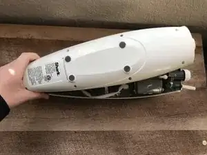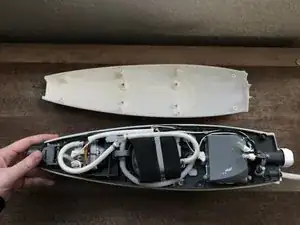 После удаления нижней части сборки аккуратно переверните швабру и отведите переднюю панель в сторону.