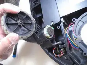 Снимите панель основного отсека, чтобы получить доступ к оси колеса и вентилятору.