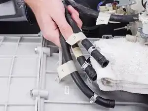 Потяните шланг входного клапана прямо к выключению его на сборке входного клапана.
