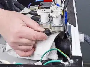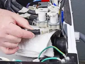 Положите сухую тряпку под входной клапан, чтобы впитать оставшуюся воду.