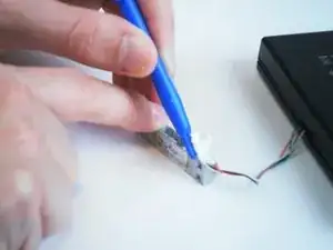 Сняв сенсор, используйте пластиковый инструмент, чтобы удалить клей, удерживающий провода.
