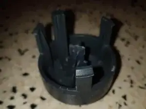 Кнопку питания держат 3 пластиковых крючка/зажима. Используйте какой‑нибудь монтажный инструмент, чтобы сдвинуть их внутрь.