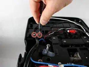 Ослабьте два винта с крестообразной головкой #1 и размером 6 мм и снимите зажим, удерживающий сетевой кабель.