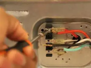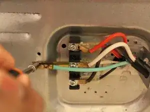 Теперь удалите зелёный винт, чтобы снять заземляющий кронштейн.