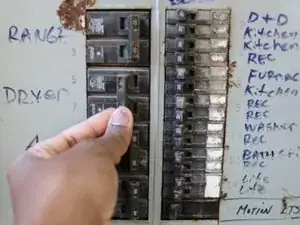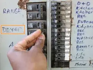 Как только он будет найден, найдите выключатель сушилки и переключите его в положение ВЛЕВО, чтобы выключить.