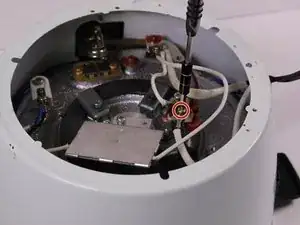 Удалите латунный винт #3 размером 10 мм над нагревателем, который соединяет белый провод сетевого кабеля и бордовый провод.