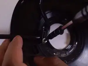 В этот момент, если все цветные провода на конце выпрямлены, сетевой шнур можно вытащить через чёрную нижнюю часть основания.