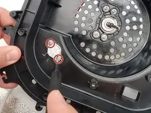 Отверткой Phillips удалите два винта с мотора.