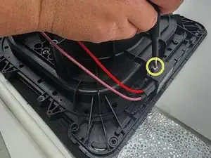 Удалите два винта Phillips #2, которые фиксируют синие и розовые кабели.
