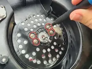 Снимите 3 винта внутри камеры приготовления, удерживающие нагревательную спираль, используя отвертку Philips #2.