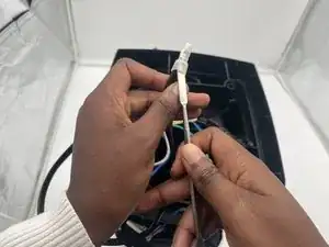 Используйте металлическую лопатку, чтобы снять пластиковый хомут, соединяющий сетевой шнур с платой.