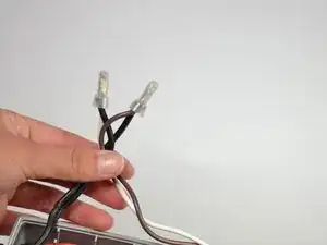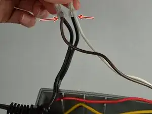 Найдите соединения между сетевым шнуром и коричневыми и белыми проводами. Обрежьте эти соединения.