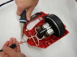 С помощью паяльника соедините черный и белый провода нового сетевого шнура с тем местом, где был отрезан предыдущий шнур.