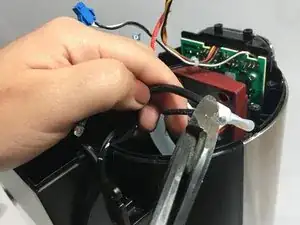 С помощью бокорезов обрежьте оставшиеся провода, подведённые к обжимным клеммам со стороны корпуса кофеварки.