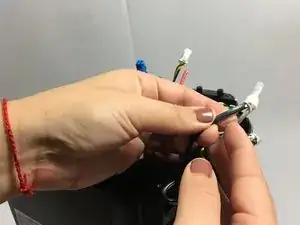 С помощью обжимной клеммы соедините оголённый конец провода от нового нагревательного элемента с соответствующим оголённым проводом из кофеварки.