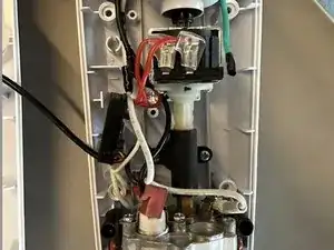 Основные компоненты на изображении: контрольная схема, насос для воды и обогревательный элемент.