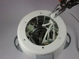 Используя плоскогубцы, потяните белую пластиковую ручку на краю устройства вверх, отодвигая её от корпуса. Ручка должна выйти из крепления.