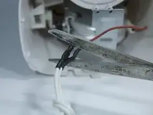 Перед началом убедитесь, что вы отключили сетевой шнур от розетки. Вам нужно будет снять основание и заменить сетевой шнур. Вам нужно будет обрезать старый сетевой шнур и припаять новый.