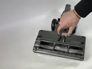 Нажмите на черный рычаг разблокировки, чтобы снять моторизованную насадку для пола.