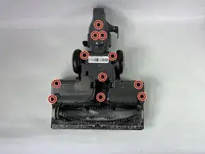 Уберите десять винтов Torx T8 длиной 9,4 мм на нижней стороне моторизованной насадки для пола.
