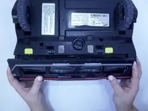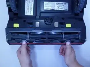 Переверните устройство, чтобы получить доступ к дну пылесоса, при этом отсек для щетки должен быть ближе к вам.