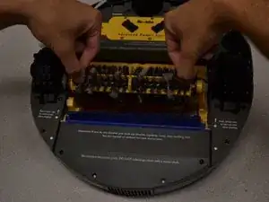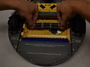 Переверните Roomba так, чтобы была видна нижняя часть. Должны быть видны колеса и щетки.