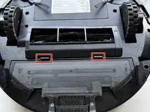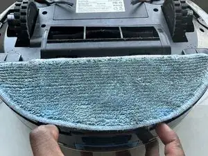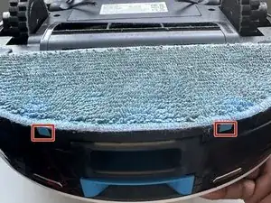 Нажмите синие кнопки под тряпкой и вытяните тряпку, чтобы получить доступ к отсеку для щёток.