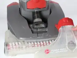Потяните за красную ручку, чтобы удалить переднюю всасывающую единицу из пылесоса.