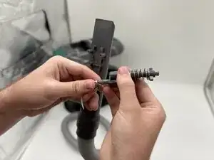 При сборке нажмите на пружину механизма распыления, пока не увидите шарик. Затем подключите пластиковый переключатель к шарiku и вставьте его в вставки. Этот шаг по сборке может быть довольно сложным.