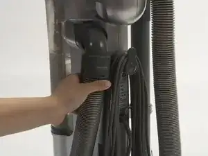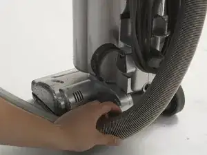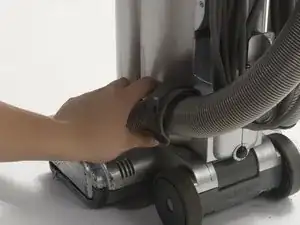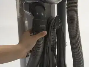 Сильно потяните за шланг, расположенный с правой стороны пылесоса.