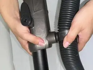 Нажмите кнопку с надписью «Hose Release», чтобы отсоединить шланг от контейнера для пыли.
