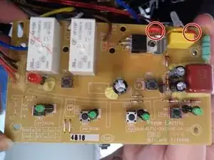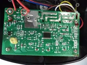 Убедитесь, что два красных провода, показанные на фото, правильно припаяны к печатной плате.