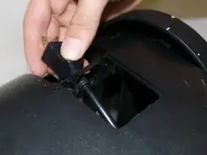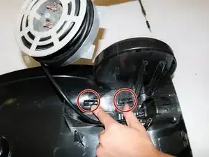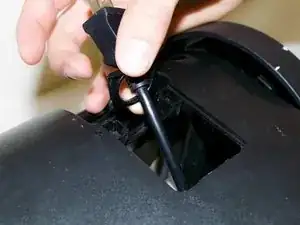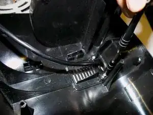 Потяните катушку со шнуром, чтобы вынуть её. Вы должны услышать щелчок, указывающий на то, что она отстегнулась в месте, показанном на изображении.