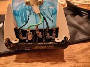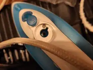 Разборка утюга может быть сложной; в этом есть один скрытый винт.