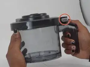 Удерживая кнопку, потяните крышку строго вверх, чтобы снять её с чаши.