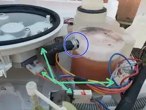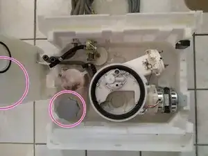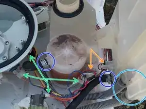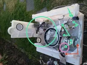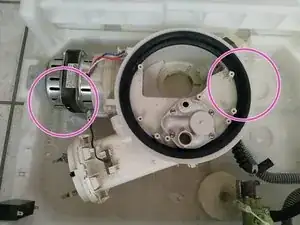 На втором фото: снимите зажимы, которые фиксируют барабан машины к подсборке.