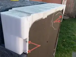 Теперь разбираем дверь. Вокруг дверцы по периметру 10 винтов, которые держат переднюю панель на внутренней панели двери. Снимите их. (извините, я потерял правильную фотографию)