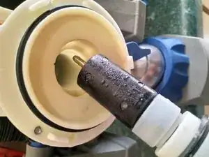 Поддевание ротора из корпуса не выявило ничего дополнительного, вызывающего тревогу. Вода внутри может фактически обеспечивать некоторое охлаждение, и благодаря конструкции насоса (магнитный привод) электрического риска нет. Это также устраняет необходимость в сальнике вала. Звучит как хорошая инженерная мысль!