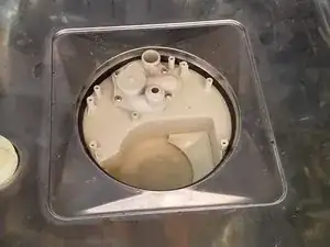 Попросите помощника аккуратно поднять бак, постоянно проверяя, нет ли застреваний и т.д. После снятия бака очистите и отложите в сторону.
